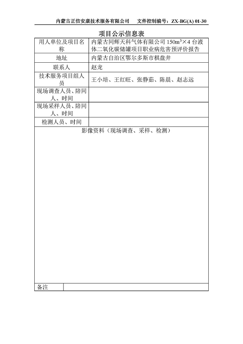 內(nèi)蒙古同輝天科氣體有限公司150m3×4臺液體二氧化碳儲罐項目職業(yè)病危害預(yù)評價