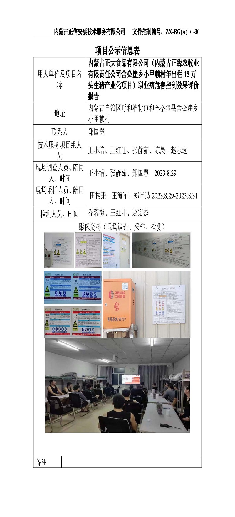 內(nèi)蒙古正大食品有限公司(內(nèi)蒙古正緣農(nóng)牧業(yè)有限責(zé)任公司舍必崖鄉(xiāng)小甲賴村年出欄15萬頭生豬產(chǎn)業(yè)化項目)職業(yè)病危害控制效果評價