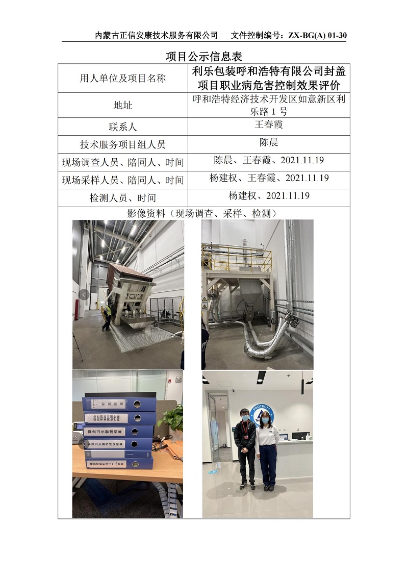 2021年度1月-12月職業(yè)衛(wèi)生檢測評價項目信息公示