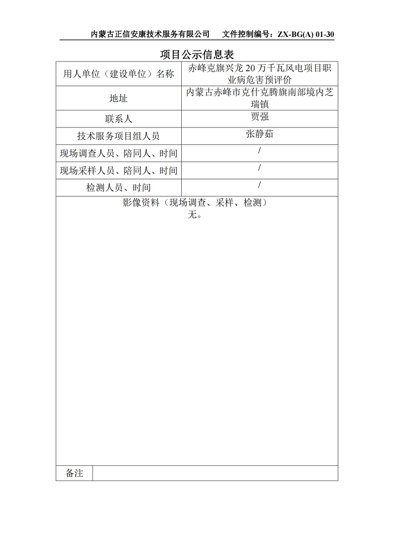 赤峰克旗興龍20萬(wàn)千瓦風(fēng)電項(xiàng)目職業(yè)病危害預(yù)評(píng)價(jià)