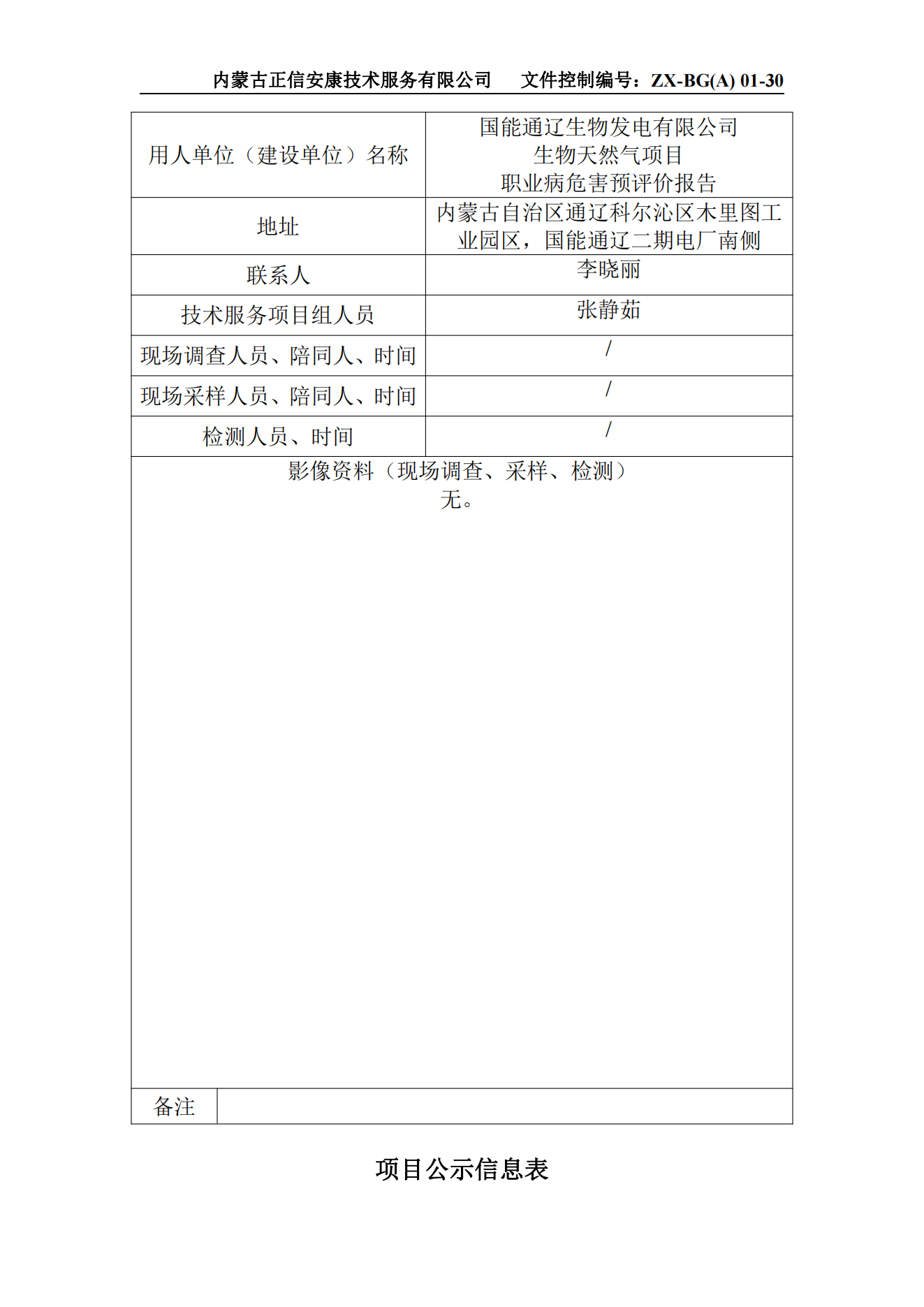 國能通遼生物發(fā)電有限公司生物天然氣項目職業(yè)病危害預(yù)評價