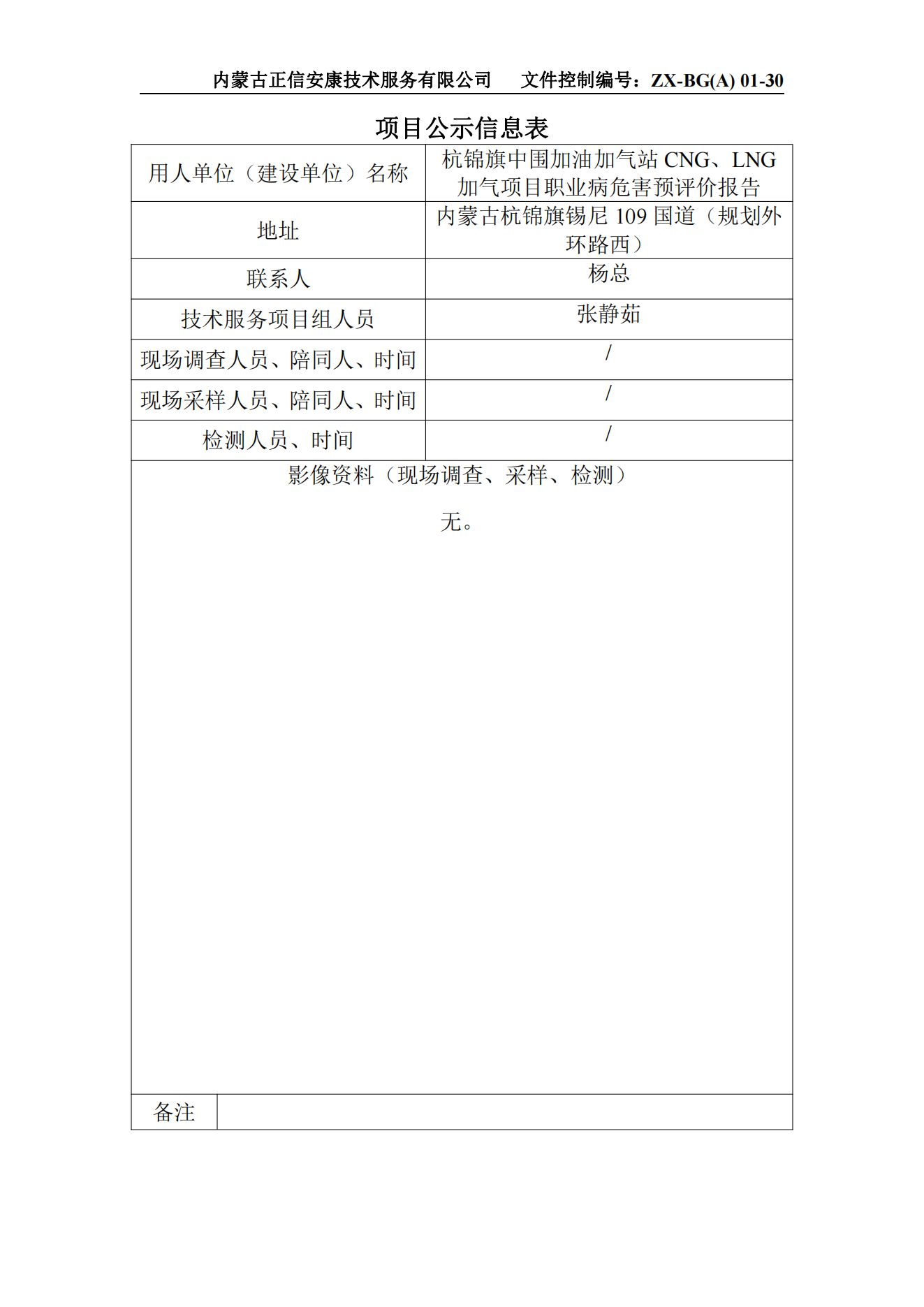 杭錦旗中圍加油加氣站CNG、LNG加氣項目職業(yè)病危害預評價