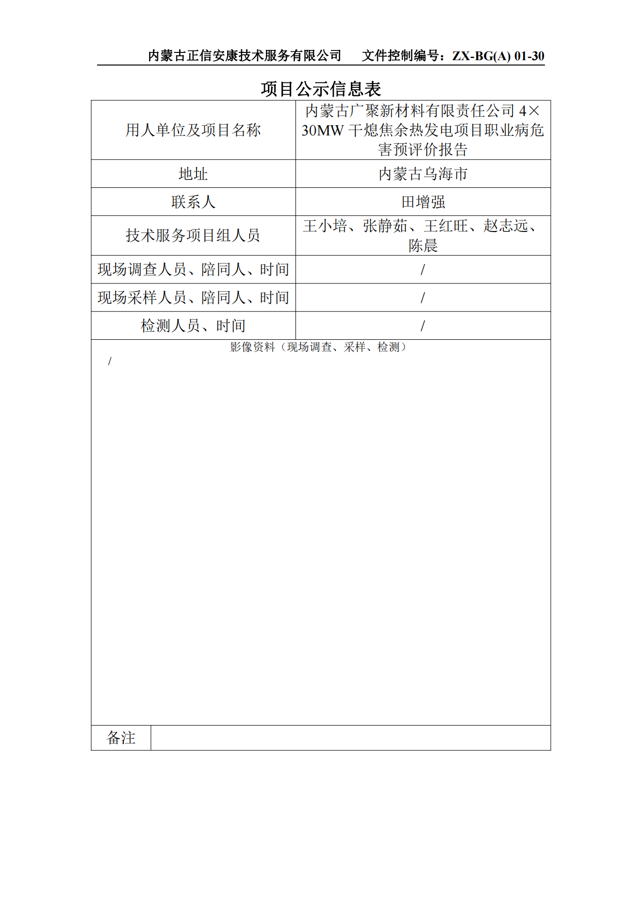 內(nèi)蒙古廣聚新材料有限責(zé)任公司4×30MW干熄焦余熱發(fā)電項(xiàng)目職業(yè)病危害預(yù)評(píng)價(jià)