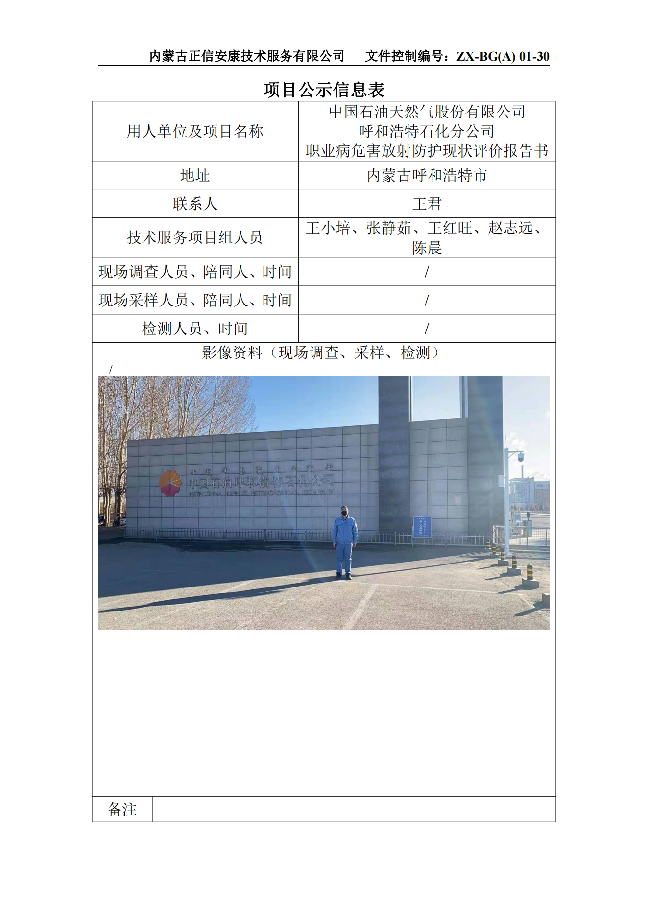 中國石油天然氣股份有限公司 呼和浩特石化分公司 職業(yè)病危害放射防護(hù)現(xiàn)狀評價(jià)