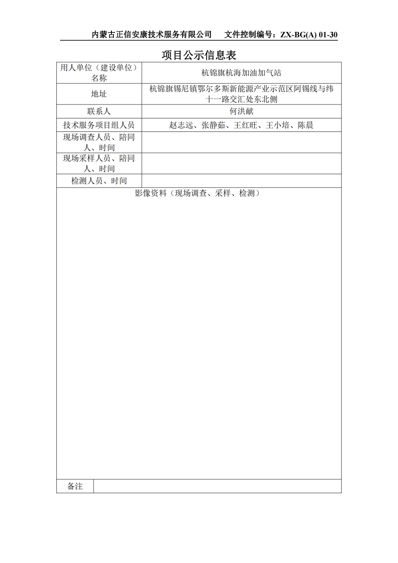 杭錦旗杭海加油加氣站LNG加氣項(xiàng)目職業(yè)病危害預(yù)評價(jià)報(bào)告項(xiàng)目公示信息表