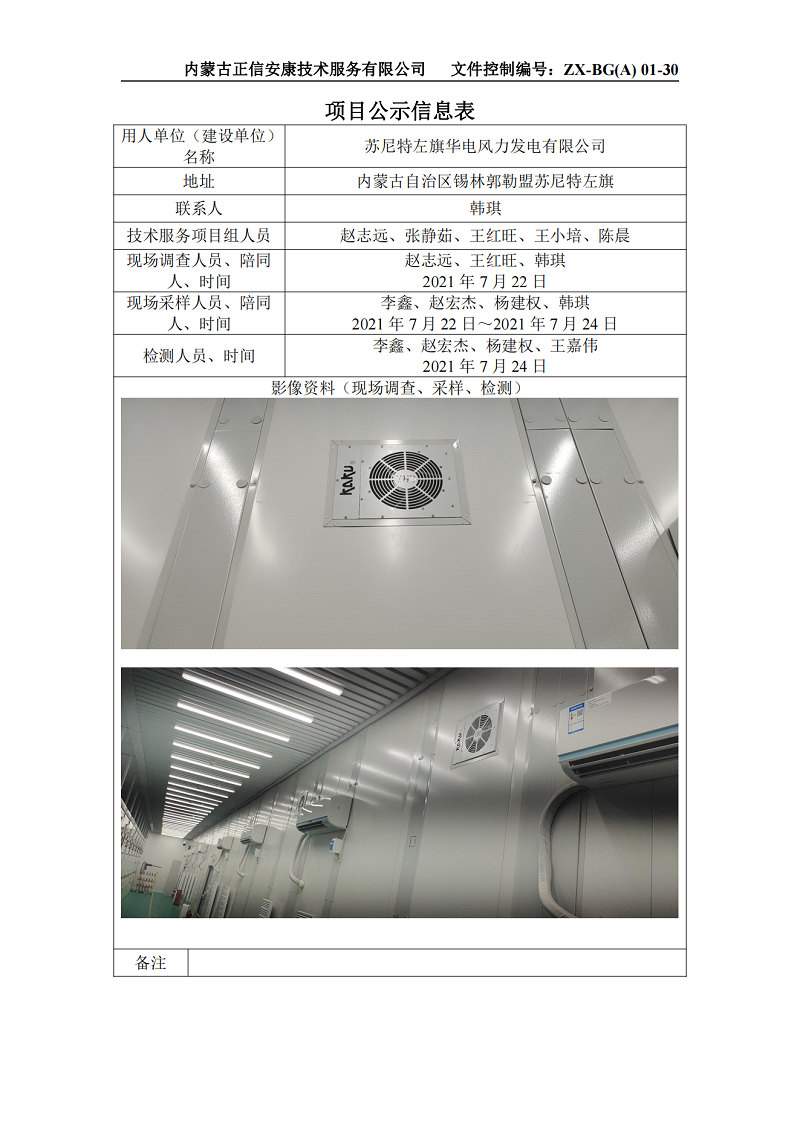 內(nèi)蒙古華電蘇尼特左旗滿(mǎn)都拉圖一期100MW風(fēng)電項(xiàng)目職業(yè)病危害控制效果評(píng)價(jià) 項(xiàng)目公示信息表