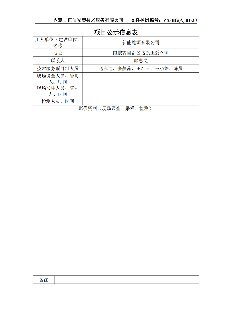 新能能源有限公司放空燃料氣資源回收利用項(xiàng)目(余氣回收1×2.0MW發(fā)電項(xiàng)目)職業(yè)病危害預(yù)評價(jià)報(bào)告項(xiàng)目公示信息表