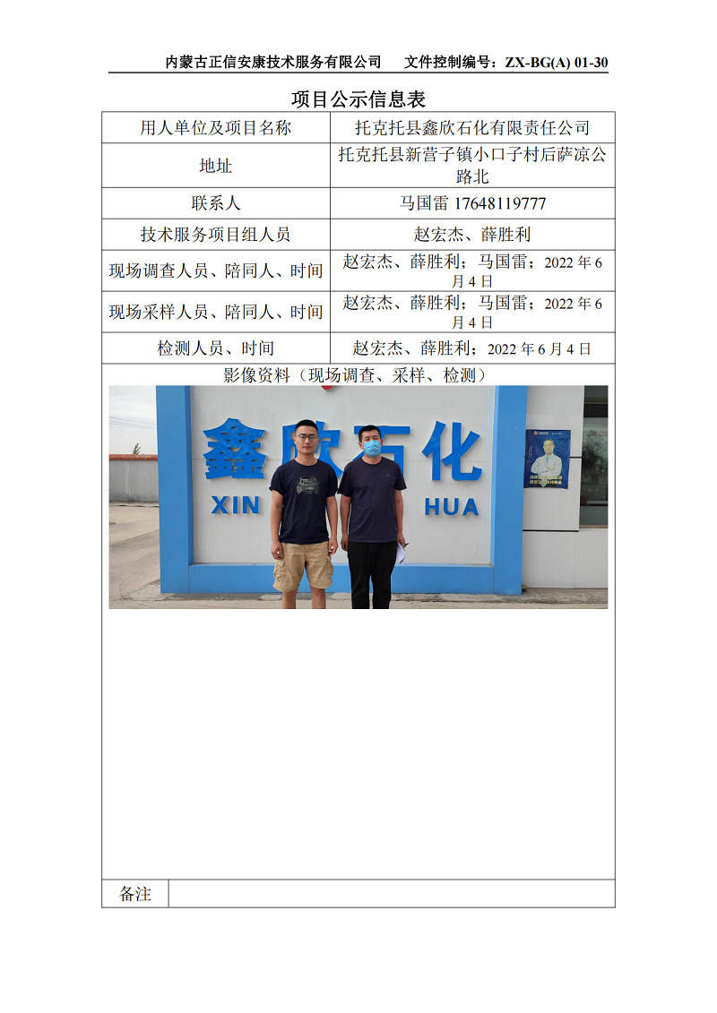 托克托縣鑫欣石化有限責(zé)任公司定期檢測(cè)項(xiàng)目公示信息表