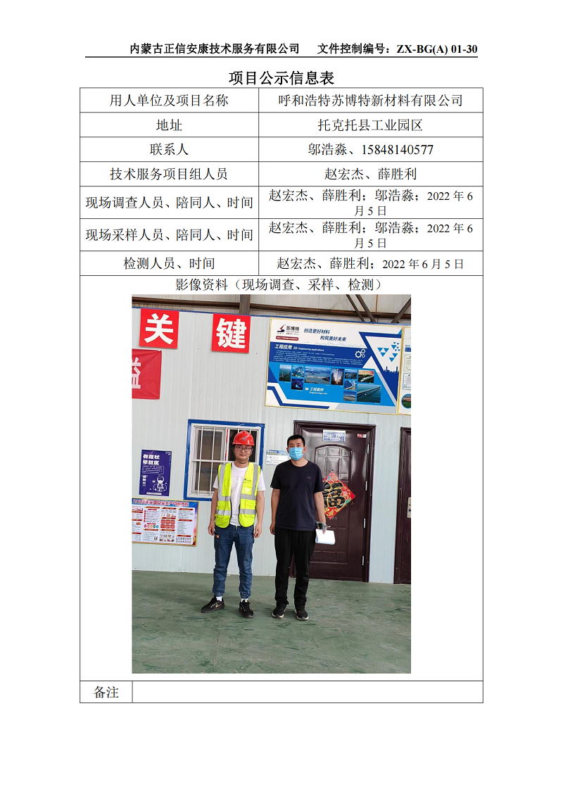 呼和浩特蘇博特新材料有限公司定期檢測(cè)項(xiàng)目公示信息表