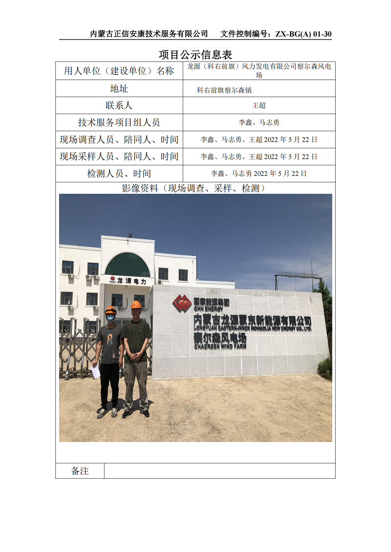 龍源(科右前旗)風力發(fā)電有限公司察爾森風電場信息公示