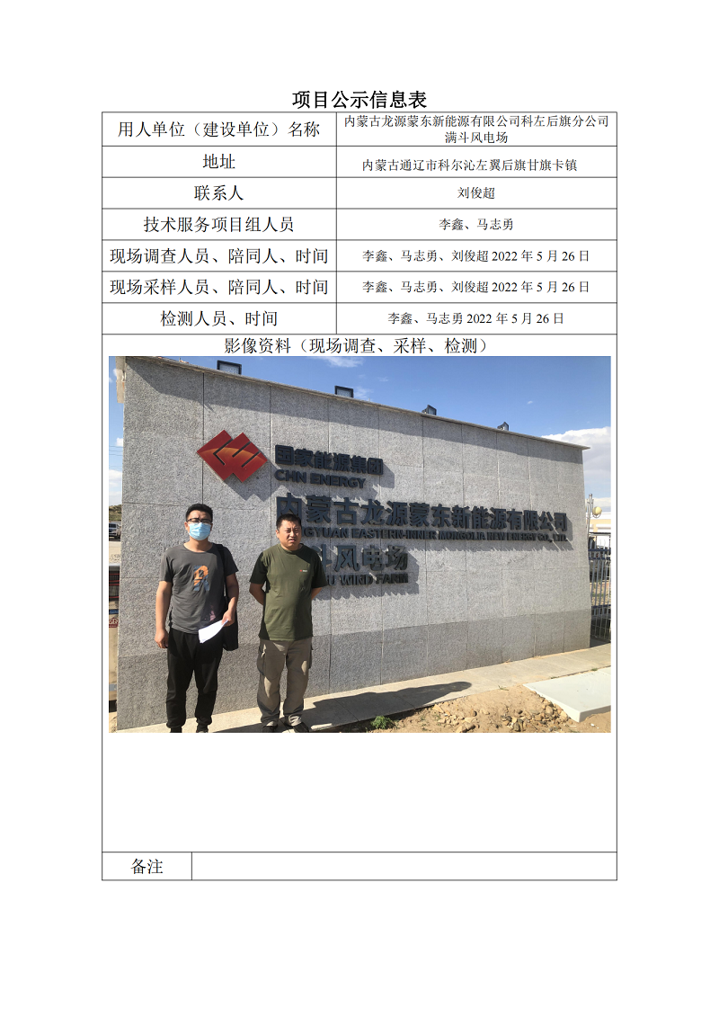 內(nèi)蒙古龍源蒙東新能源有限公司科左后旗分公司滿斗風(fēng)電場項目公示