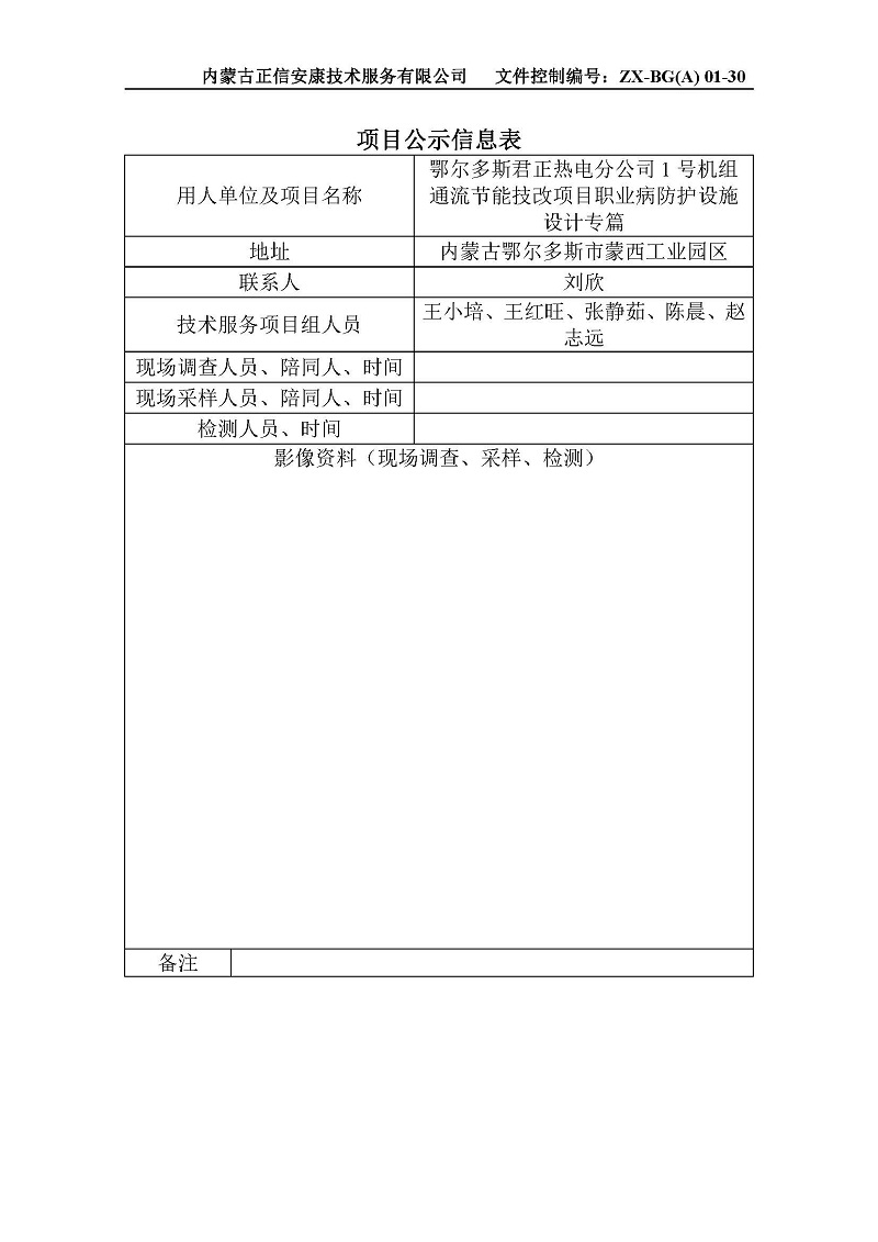 鄂爾多斯君正熱電分公司1號機(jī)組通流節(jié)能技改項目職業(yè)病防護(hù)設(shè)施設(shè)計專篇項目公示