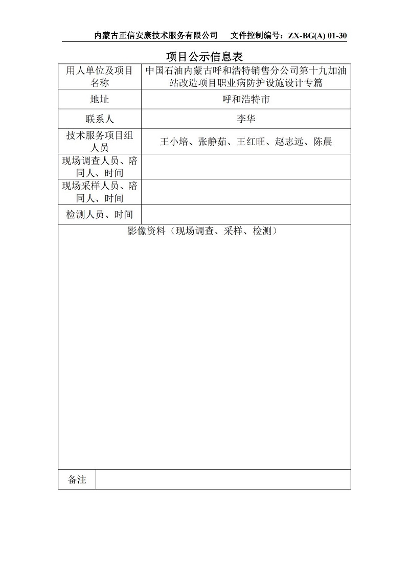 中國(guó)石油內(nèi)蒙古呼和浩特銷售分公司第十九加油站改造項(xiàng)目職業(yè)病防護(hù)設(shè)施設(shè)計(jì)專篇公示信息表