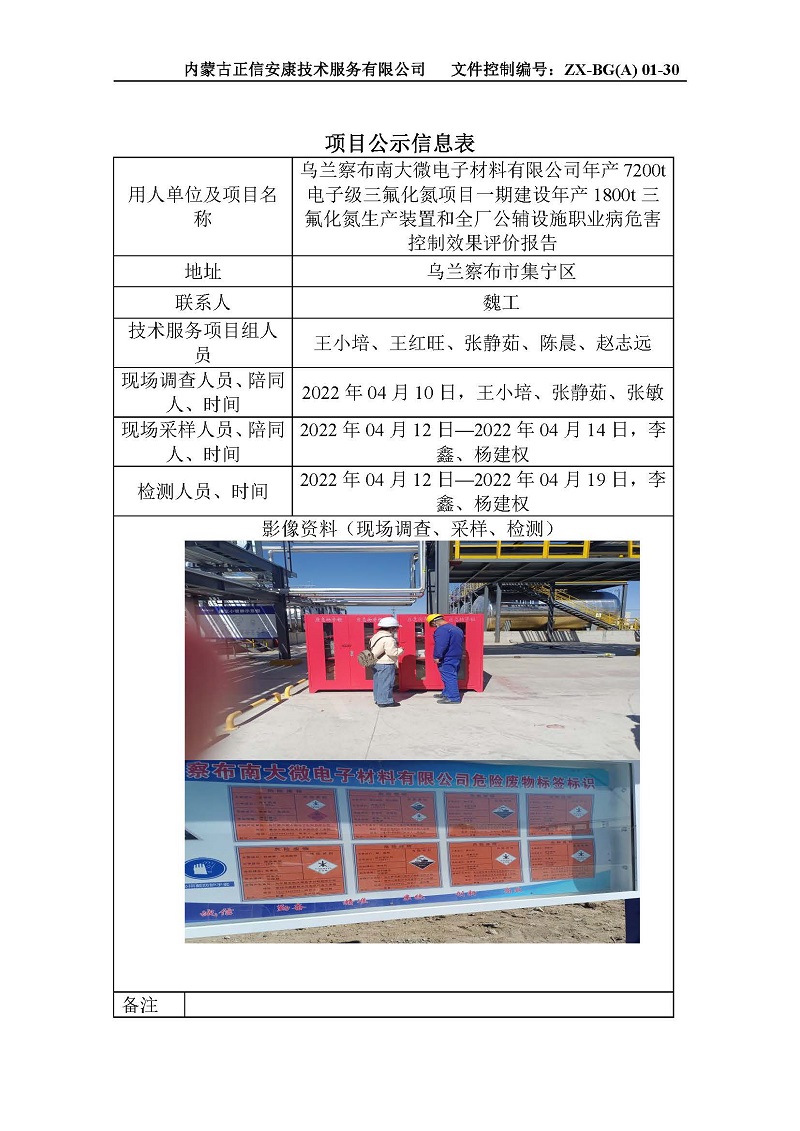 烏蘭察布南大微電子材料有限公司年產(chǎn)7200t電子級三氟化氮項目