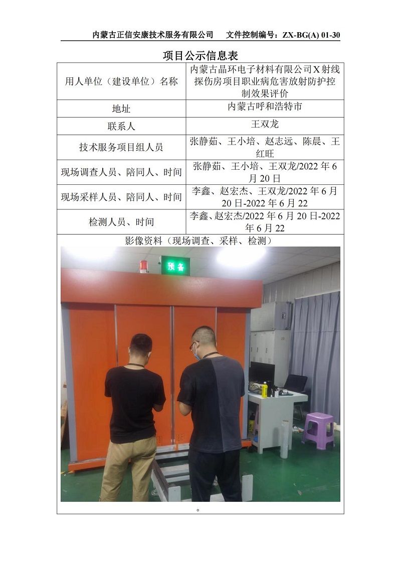 內(nèi)蒙古晶環(huán)電子材料有限公司X射線探傷房項目職業(yè)病危害放射防護控制效果評價項目公示