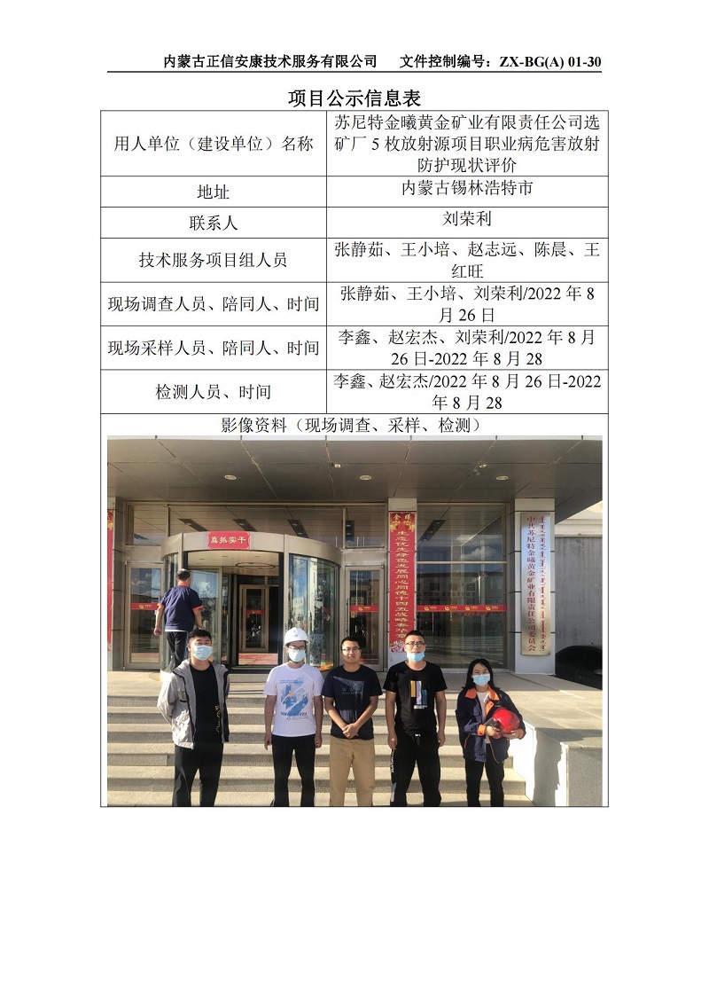 蘇尼特金曦黃金礦業(yè)有限責(zé)任公司選礦廠5枚放射源項(xiàng)目職業(yè)病危害放射防護(hù)現(xiàn)狀評(píng)價(jià)項(xiàng)目公示