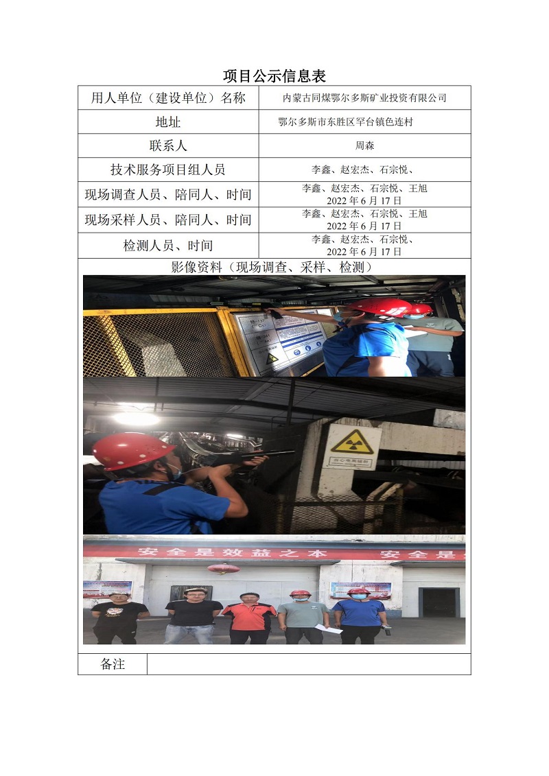內(nèi)蒙古同煤鄂爾多斯礦業(yè)投資有限公司放射定期檢測(cè)