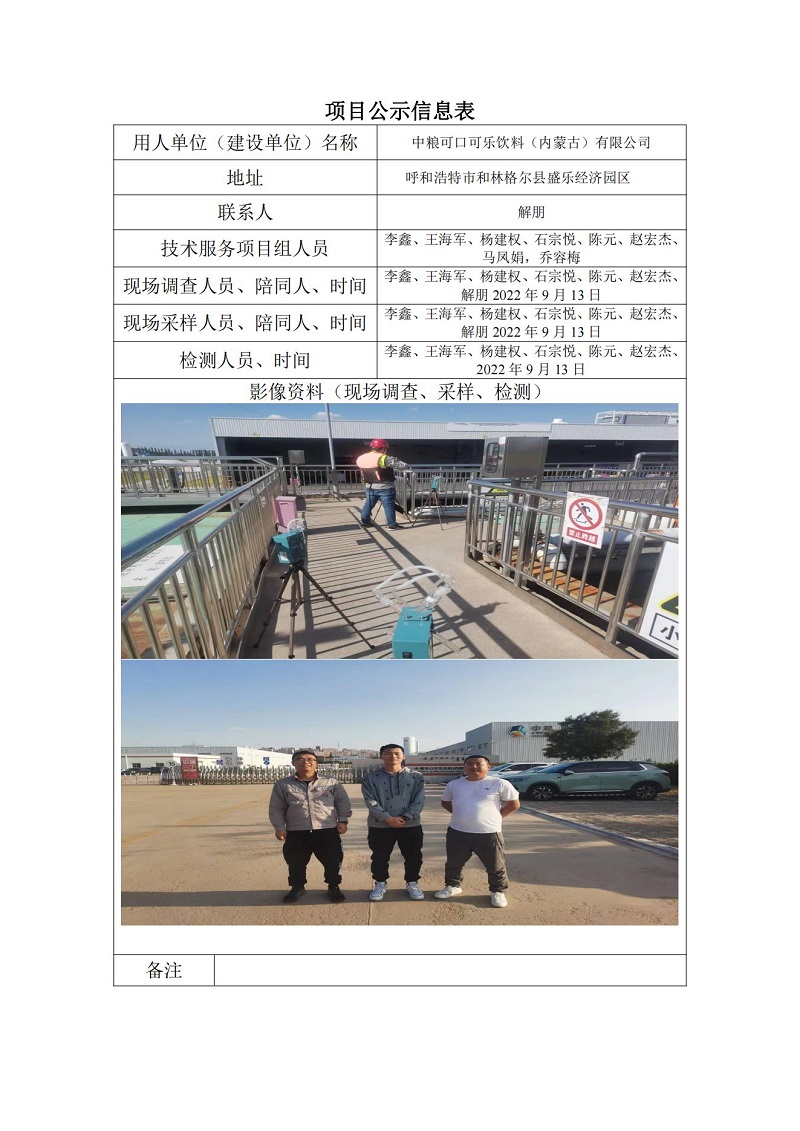 中糧可口可樂(lè)飲料(內(nèi)蒙古)有限公司定期檢測(cè)項(xiàng)目公示