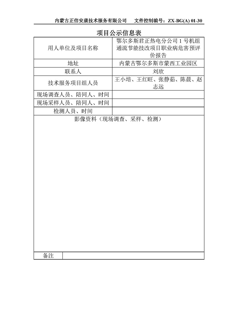 鄂爾多斯君正熱電分公司1號(hào)機(jī)組通流節(jié)能技改項(xiàng)目職業(yè)病危害預(yù)評價(jià)