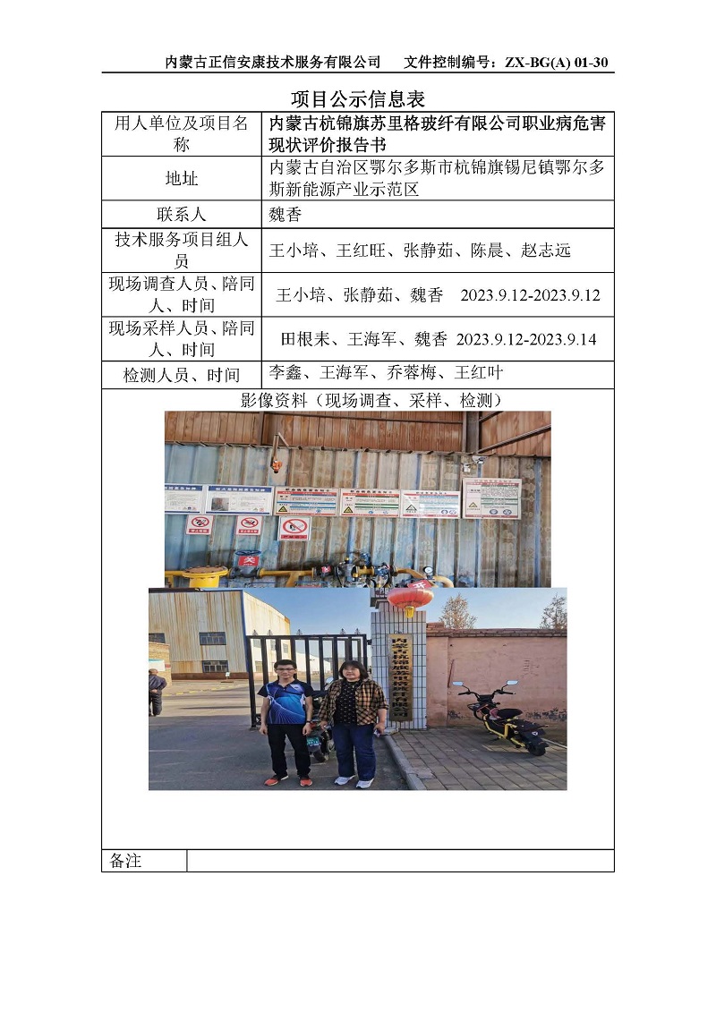 內(nèi)蒙古杭錦旗蘇里格玻纖有限公司職業(yè)病危害現(xiàn)狀評(píng)價(jià)公示