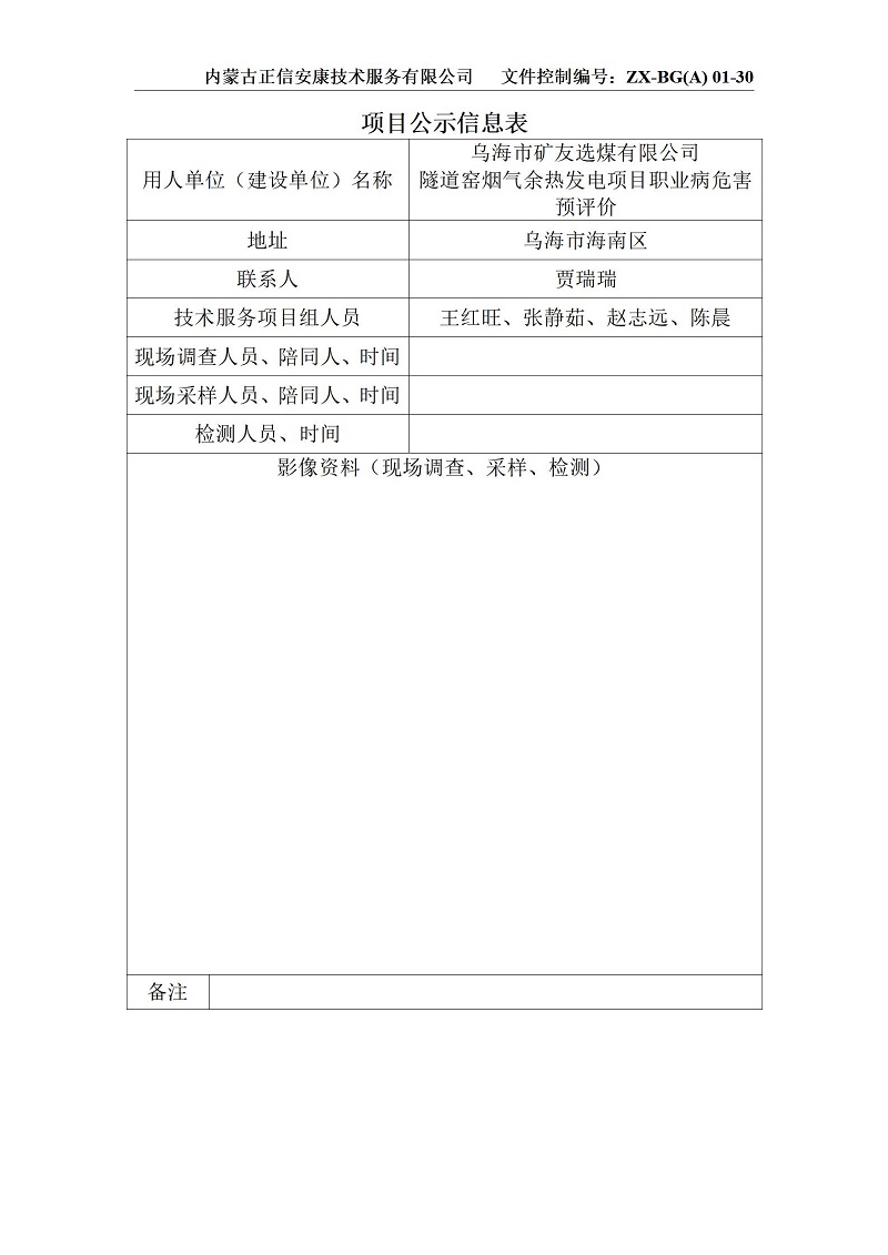 礦友余熱發(fā)電預(yù)評(píng)項(xiàng)目公示信息表