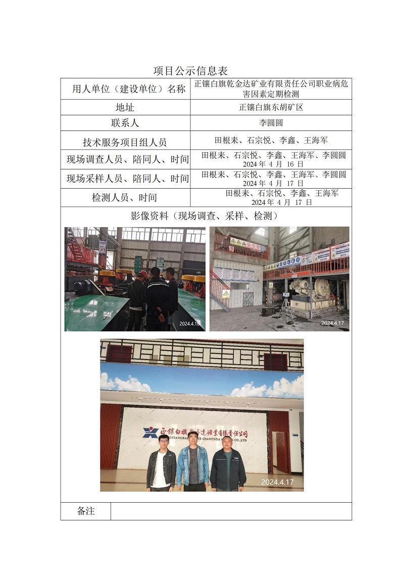 正鑲白旗乾金達(dá)礦業(yè)有限責(zé)任公司職業(yè)病危害因素定期檢測