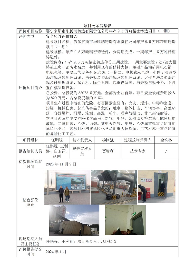 鄂爾多斯市華騰瑞鑄造有限責(zé)任公司年產(chǎn)9.5萬噸精密鑄造項(xiàng)目(一期)安全驗(yàn)收_