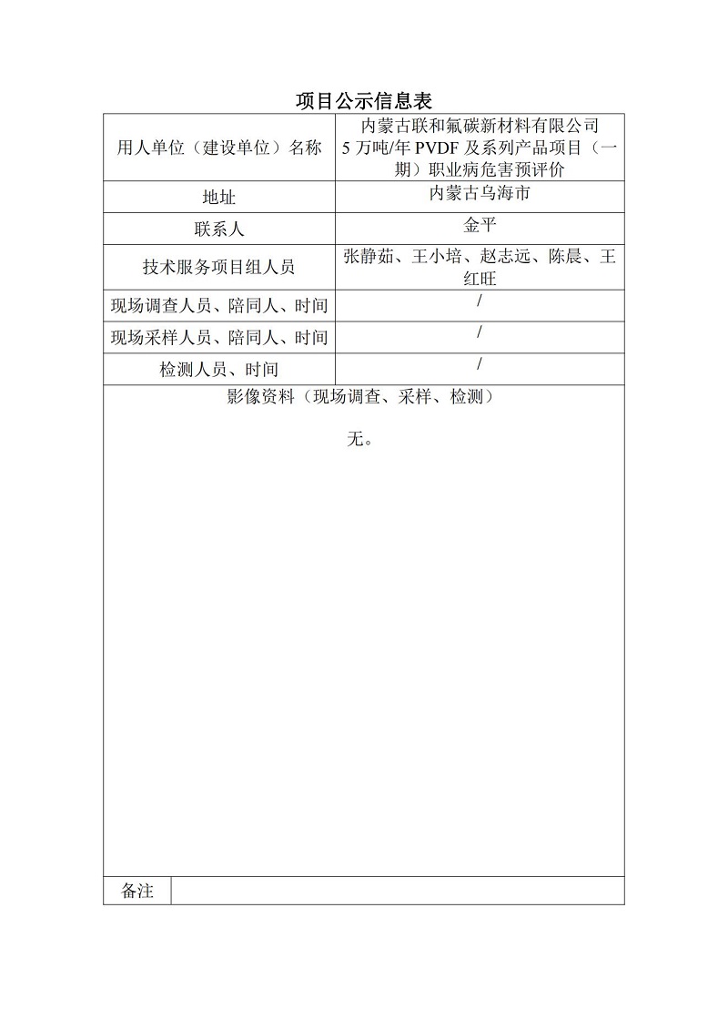 內(nèi)蒙古聯(lián)和氟碳新材料有限公司預評價公示信息