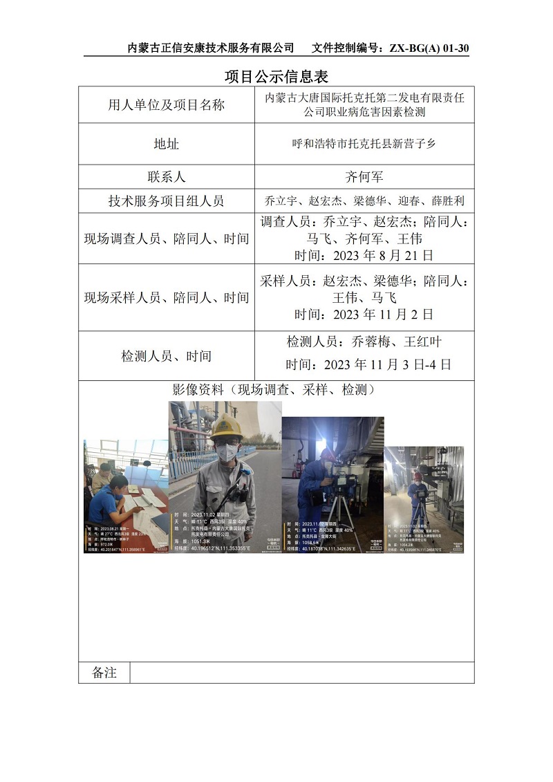 內(nèi)蒙古大唐國(guó)際托克托第二發(fā)電有限責(zé)任公司職業(yè)病危害因素檢測(cè)項(xiàng)目公示信息表(1)