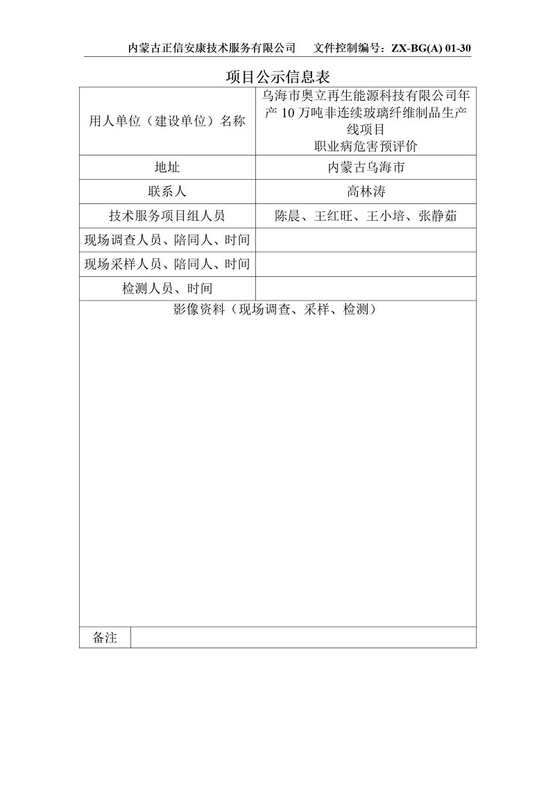 奧立10萬噸非連續(xù)玻璃纖維(預評)項目公示信息表_