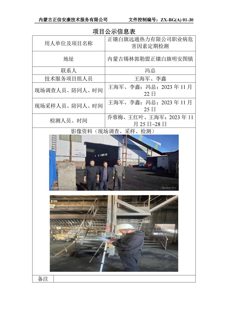 正鑲白旗遠通熱力有限公司職業(yè)病危害因素定期檢測