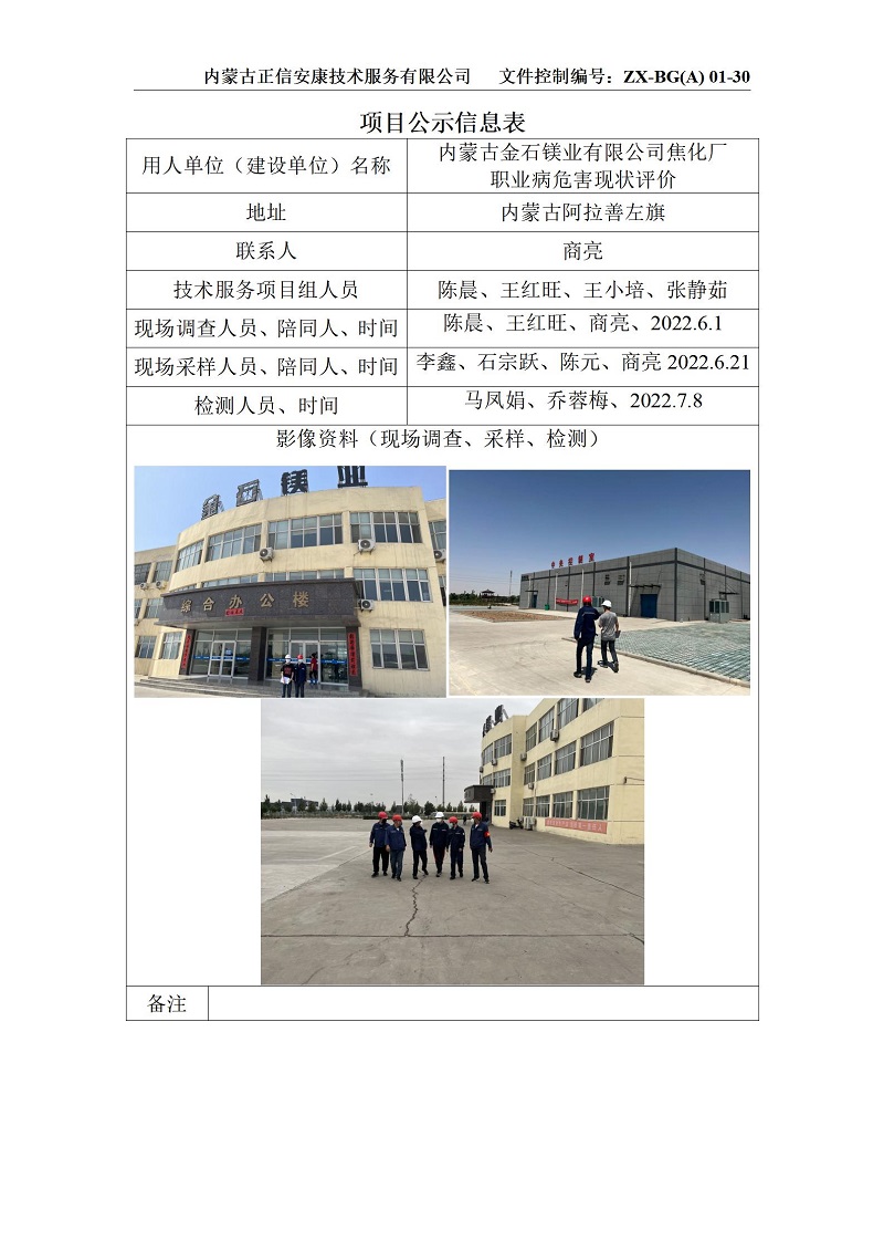 金石鎂業(yè)(焦化廠)項(xiàng)目現(xiàn)狀公示信息表