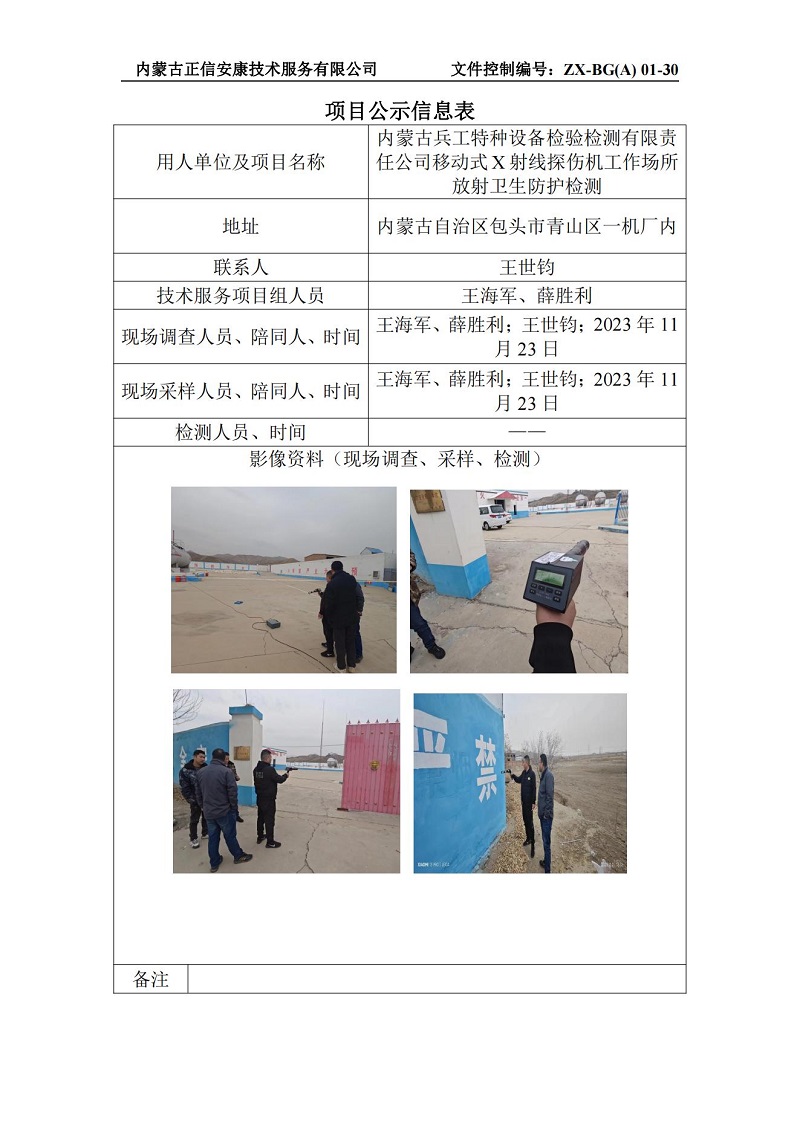 內(nèi)蒙古兵工特種設(shè)備檢驗(yàn)檢測有限責(zé)任公司移動式X射線探傷機(jī)工作場所放射衛(wèi)生防護(hù)檢測