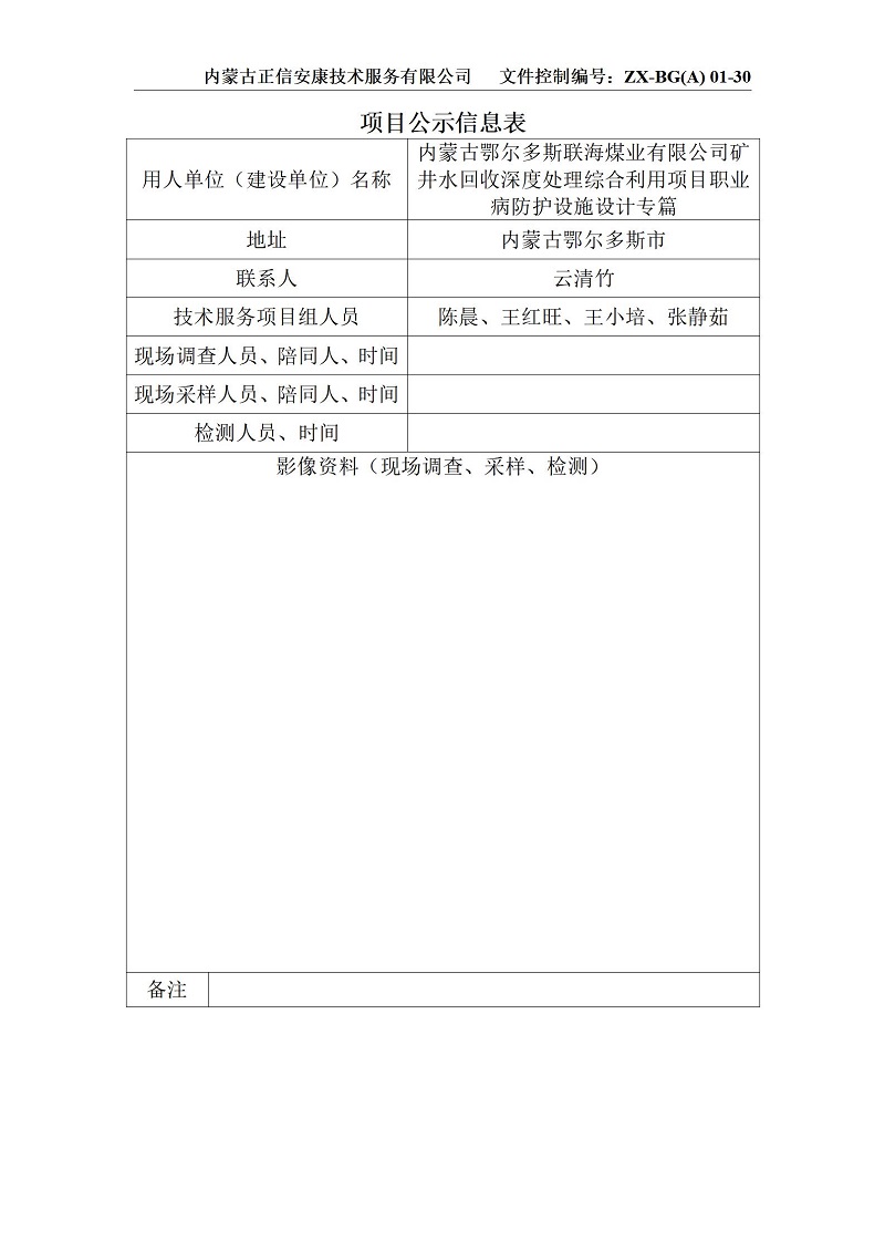 聯(lián)海煤業(yè)礦井水回收(專篇)項(xiàng)目公示信息表