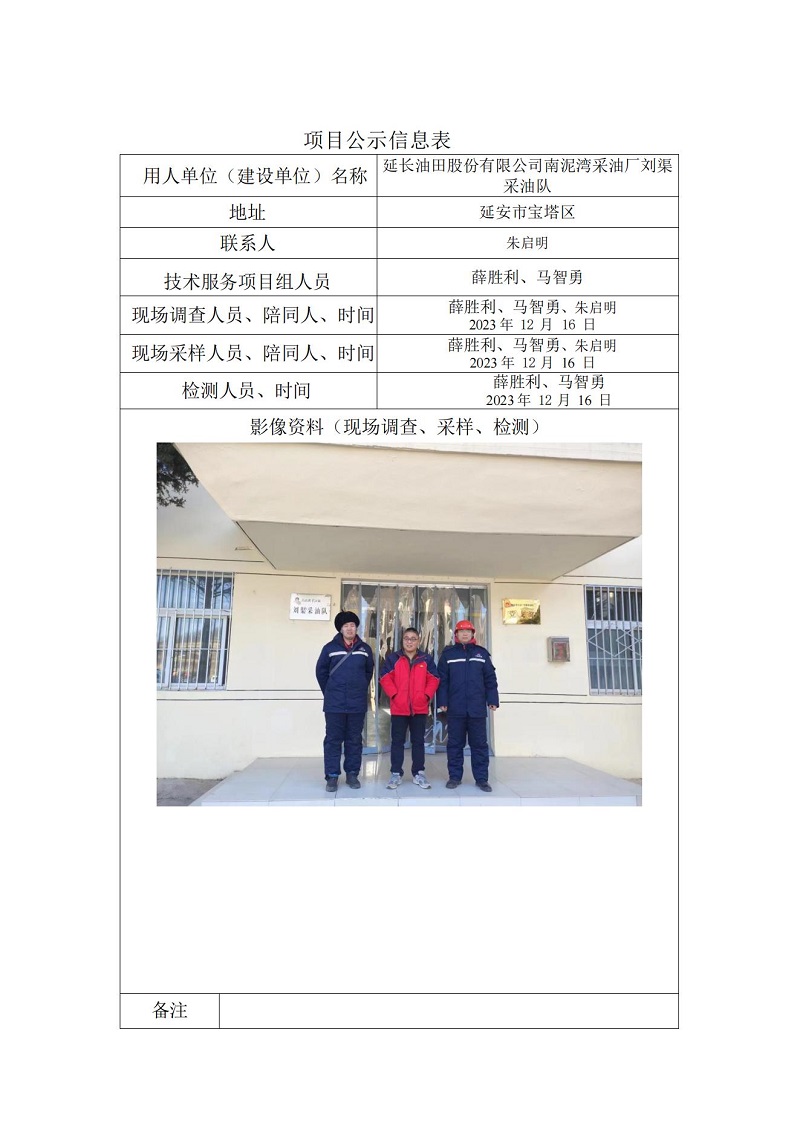 當(dāng)前位置:首頁>>項(xiàng)目公示>>延長(zhǎng)油田股份有限公司南泥灣采油廠劉渠采油隊(duì) 項(xiàng)目公示