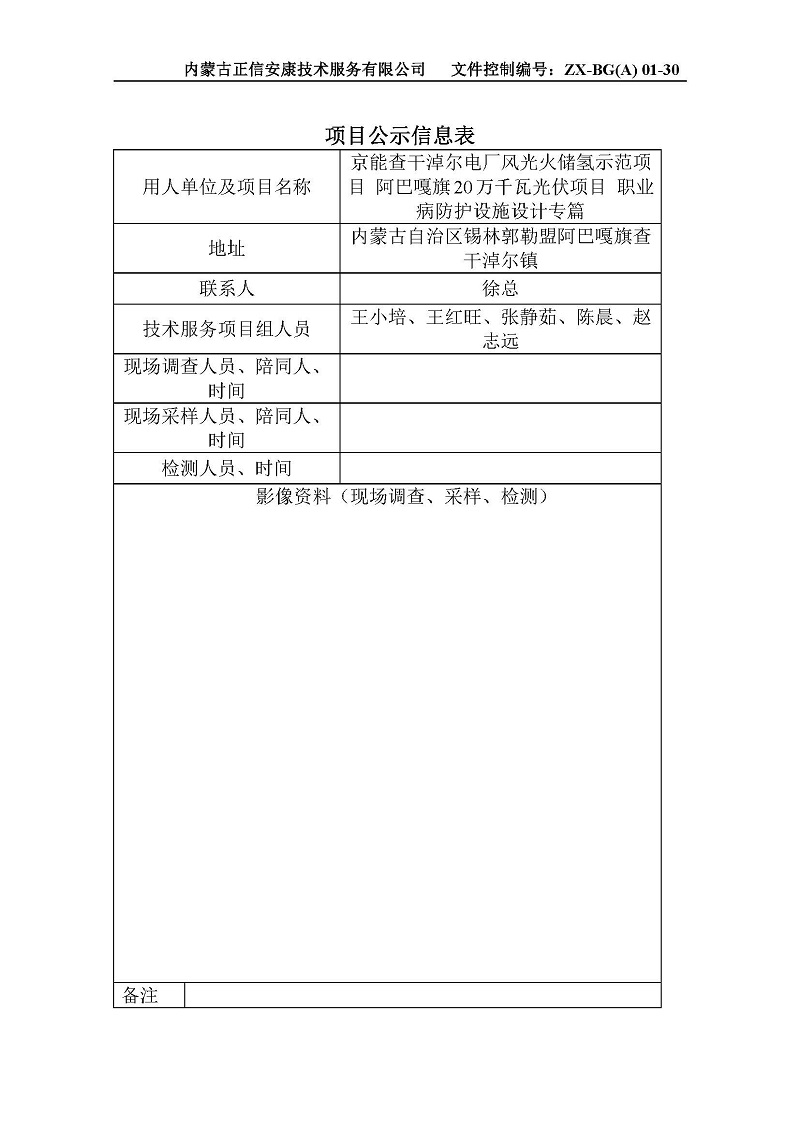 京能查干淖爾電廠風(fēng)光火儲(chǔ)氫示范項(xiàng)目 阿巴嘎旗20萬千瓦光伏項(xiàng)目 職業(yè)病防護(hù)設(shè)施設(shè)計(jì)專篇公示信息表