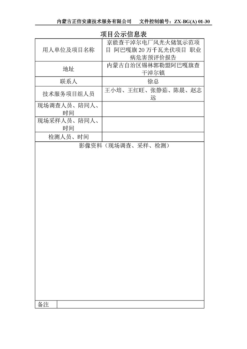 京能查干淖爾電廠風(fēng)光火儲氫示范項目 阿巴嘎旗20萬千瓦光伏項目 職業(yè)病危害預(yù)評價報告