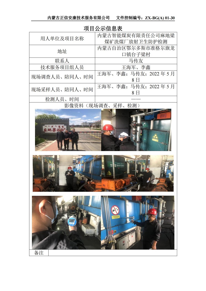 內(nèi)蒙古智能煤炭有限責(zé)任公司麻地梁煤礦洗煤廠放射衛(wèi)生防護(hù)檢測(cè)_