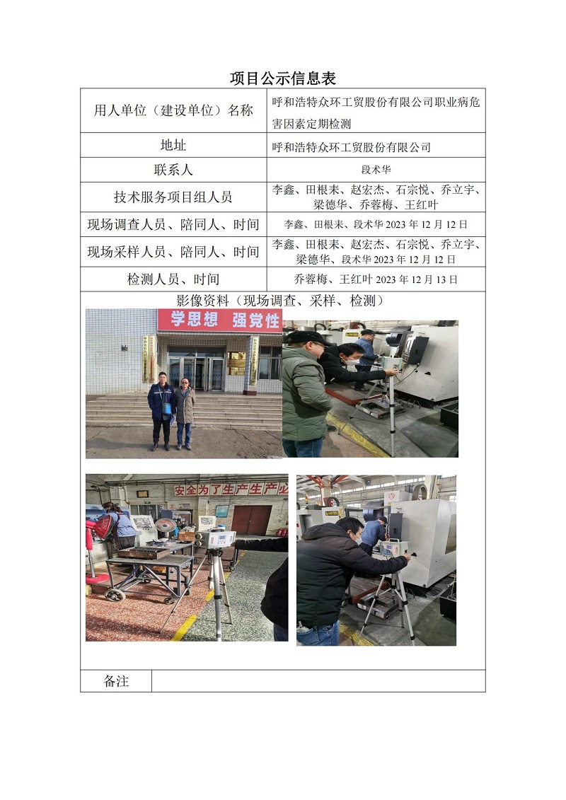 呼和浩特眾環(huán)工貿(mào)股份有限公司定檢