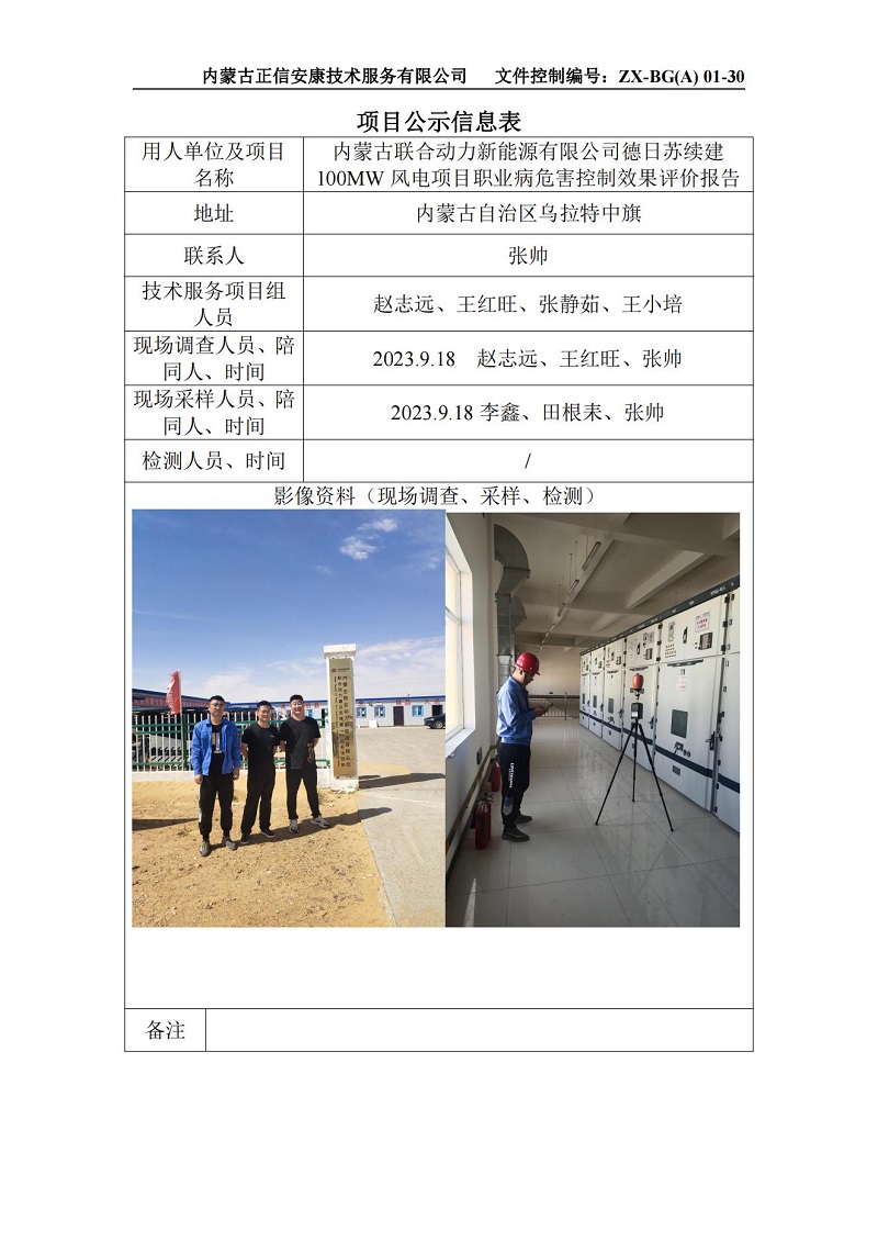 內(nèi)蒙古聯(lián)合動力新能源有限公司德日蘇續(xù)建100MW風(fēng)電項目控制效果評價-項目公示信息表