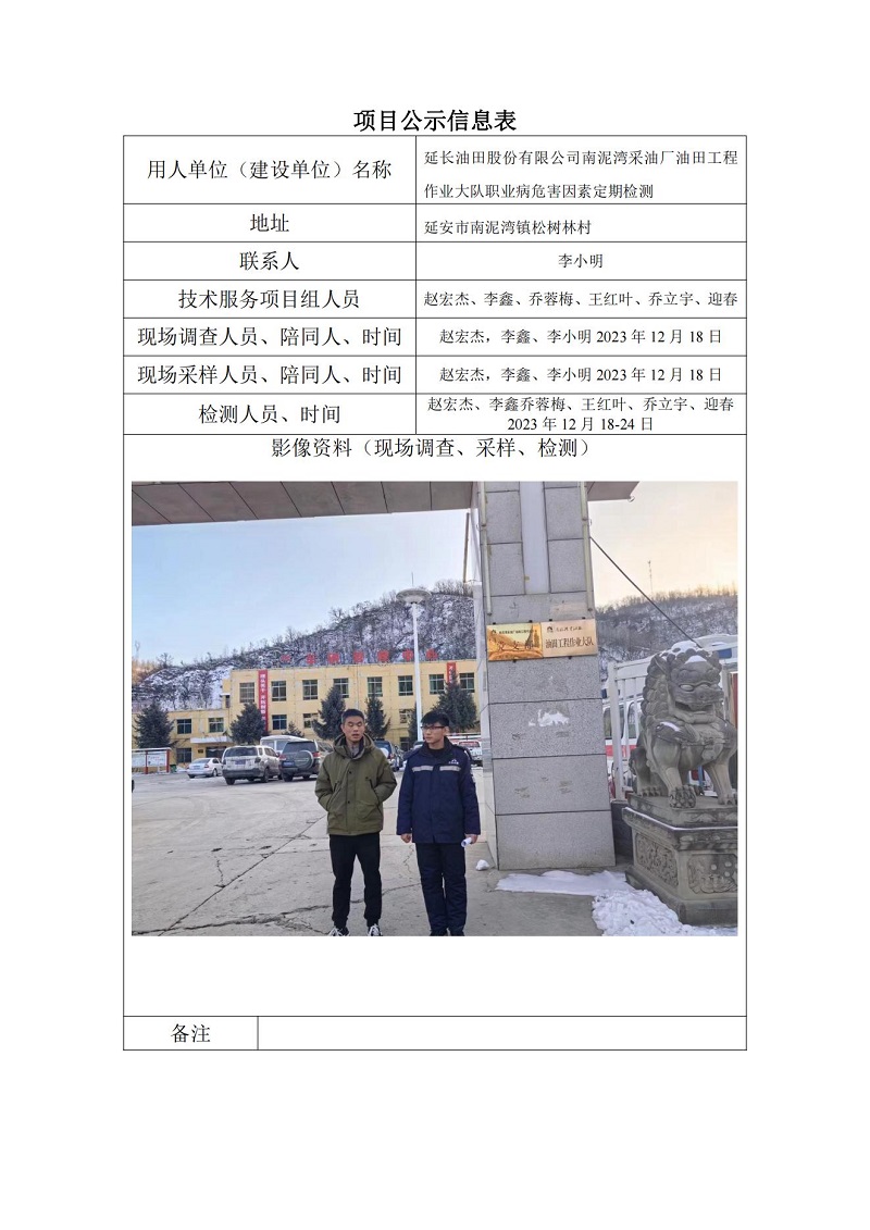 延長(zhǎng)油田股份有限公司南泥灣采油廠油田工程作業(yè)大隊(duì)職業(yè)病危害因素定期檢測(cè)