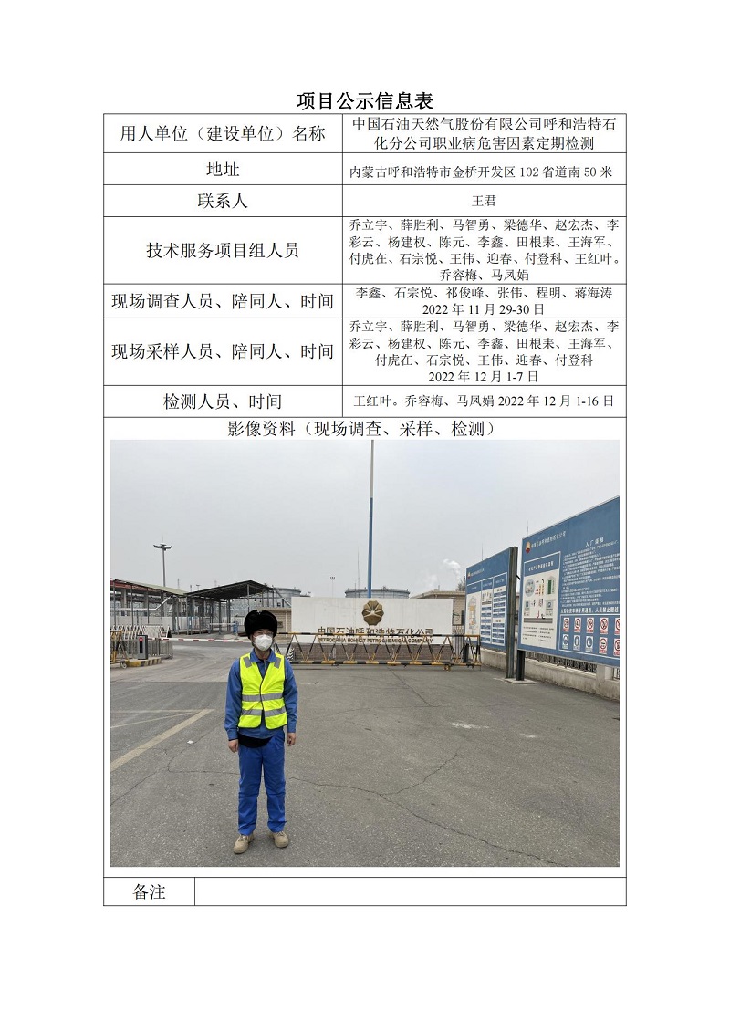 中國(guó)石油天然氣股份有限公司呼和浩特石化分公司職業(yè)病危害因數(shù)定期檢測(cè)信息公示