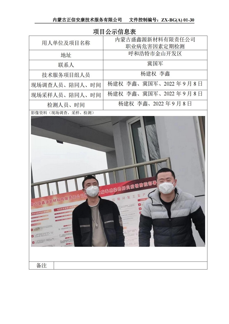 內(nèi)蒙古盛鑫源新材料有限責任公司定檢信息公示
