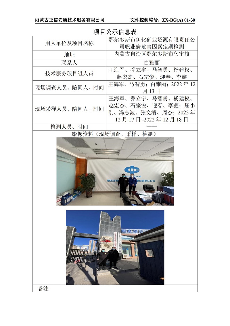 鄂爾多斯市伊化礦業(yè)資源有限責(zé)任公司職業(yè)病危害因素定期檢測