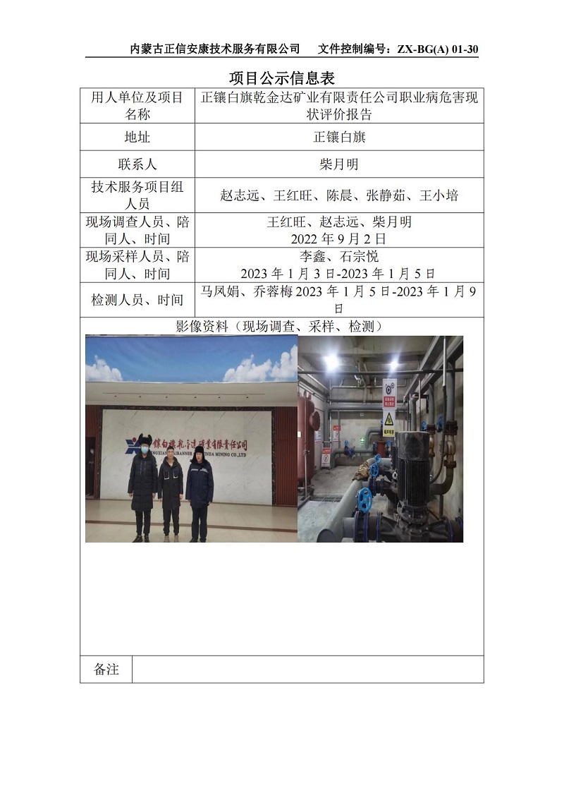 正鑲白旗乾金達(dá)礦業(yè)有限責(zé)任公司職業(yè)病危害現(xiàn)狀評價(jià)報(bào)告-項(xiàng)目公示信息表