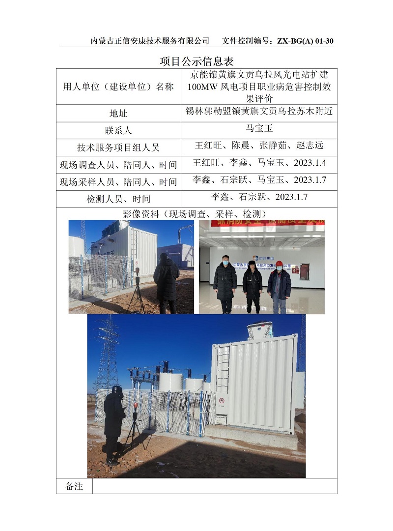 京能鑲黃旗文貢烏拉風(fēng)光電站擴(kuò)建100MW風(fēng)電項(xiàng)目控評(píng)公示信息表