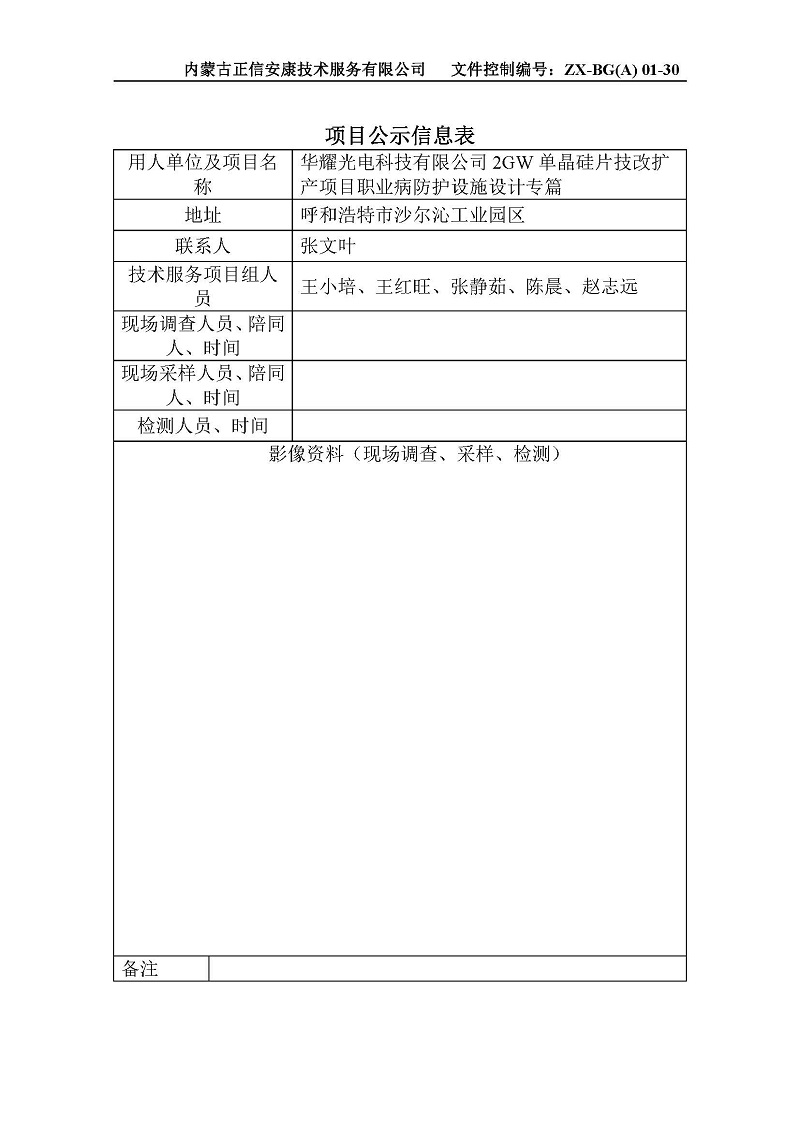 華耀光電科技有限公司2GW單晶硅片技改擴產(chǎn)項目職業(yè)病防護設(shè)施設(shè)計專篇