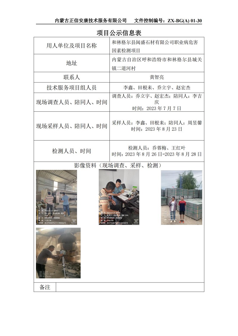 和林格爾縣閩盛石材有限公司職業(yè)病危害因素檢測項(xiàng)目公示信息表