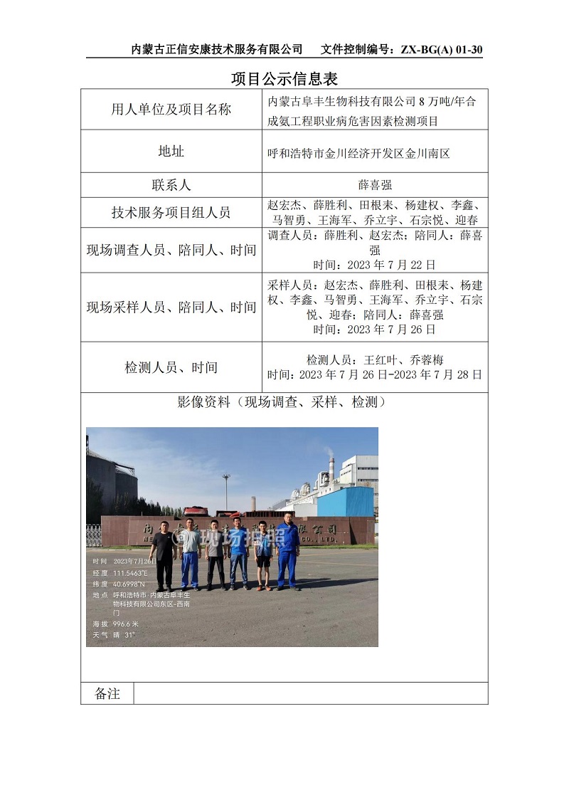 內(nèi)蒙古阜豐生物科技有限公司8萬噸年合成氨工程項(xiàng)目公示信息表