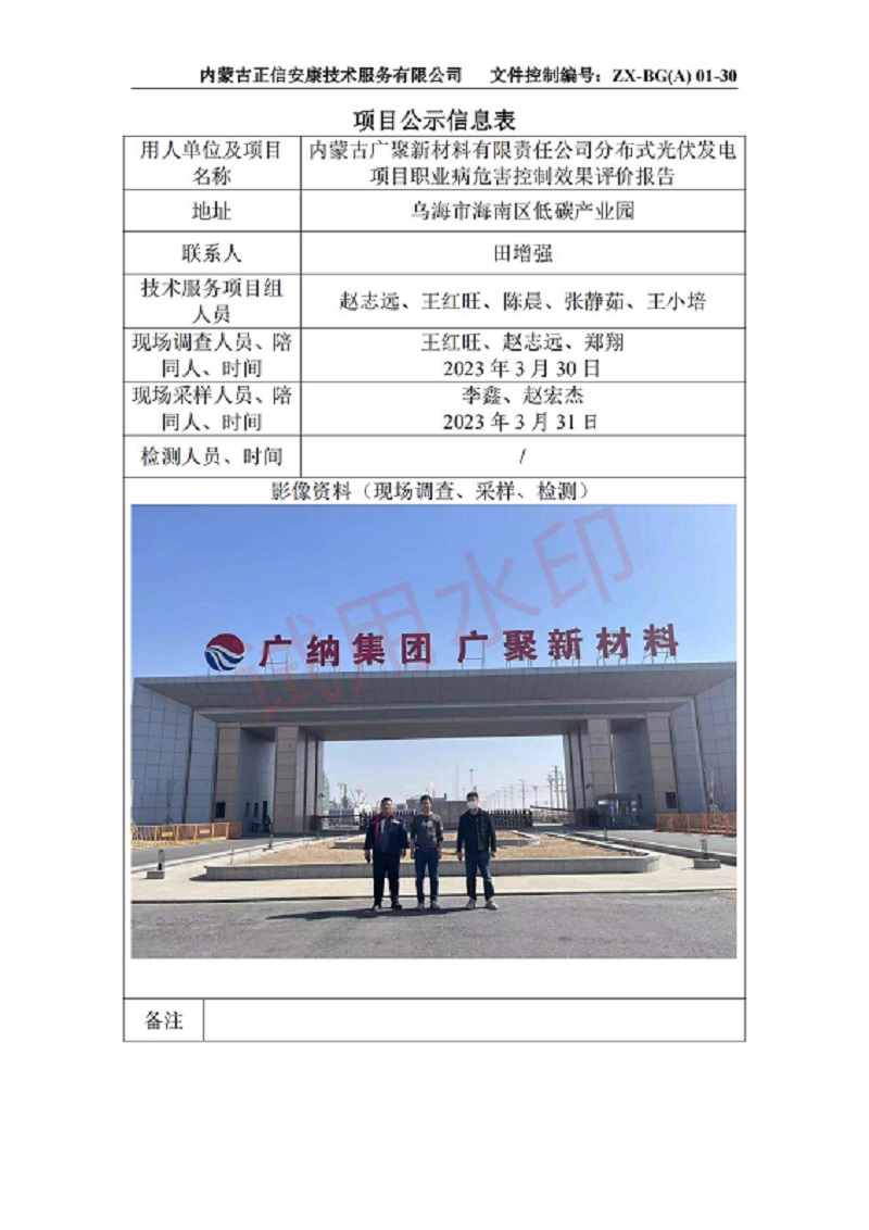 內(nèi)蒙古廣聚新材料有限責任公司分布式光伏發(fā)電項目職業(yè)病危害控制效果評價報告-項目公示信息表